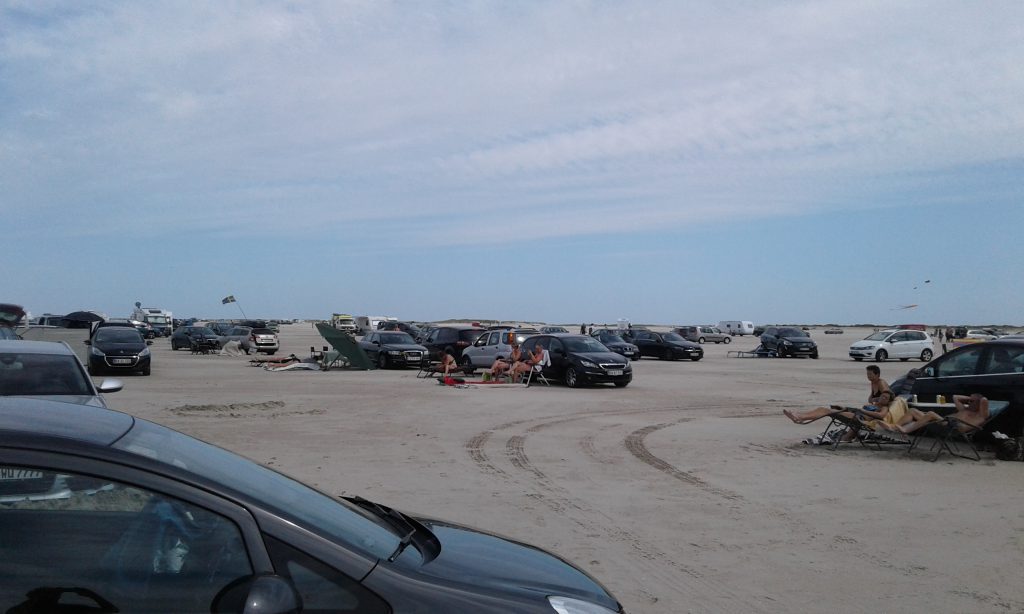 Je rijdt hier op het eiland Rømø gewoon met de automobiel het strand op, zet de stoeltjes neer en klaar is kees.